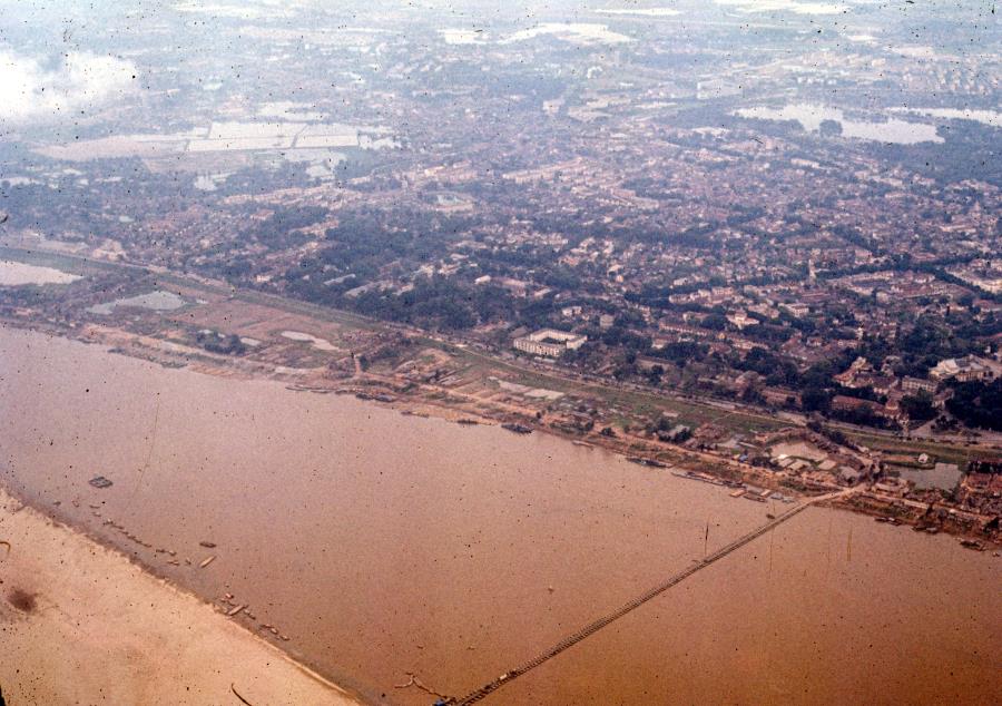 For the first flight, the Wing Commander took my crew and his instructor pilot for the mission. The next day, I was the aircraft commander for the second flight. The weather was acceptable, but then tactical VFR (visual flight rules) were pretty lose. Our mission had us flying from NKP to Saigon and then to Gia Lam airfield in Hanoi, back to Saigon and NKP. It was interesting during the approach and landing, as you didn't know what to expect. You could see the SAM rings around the city. Gia Lam airfield is actually located across the Red River, north of Hanoi. During the approach for landing we could see the Dommer Bridge, with several section down. During the rollout we passed hidden radar units and Migs in revetments. The airfield had been a target during the December Round Thunder operation and showed damage. The NVA had filled in a large hole from a B-52 bomb in front of the operations building. Another bomb had hit the rear of the building. Of course there were no windows left in the building.